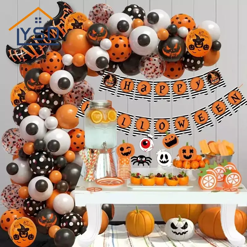Conjuntos de combinação de cores laranja e preto clássicas (como 120 conjuntos, incluindo balões de confete e balões de filme de alumínio de aranha) podem criar rapidamente uma parede de fundo do tema;