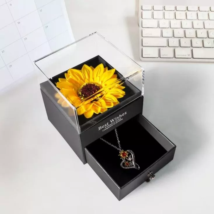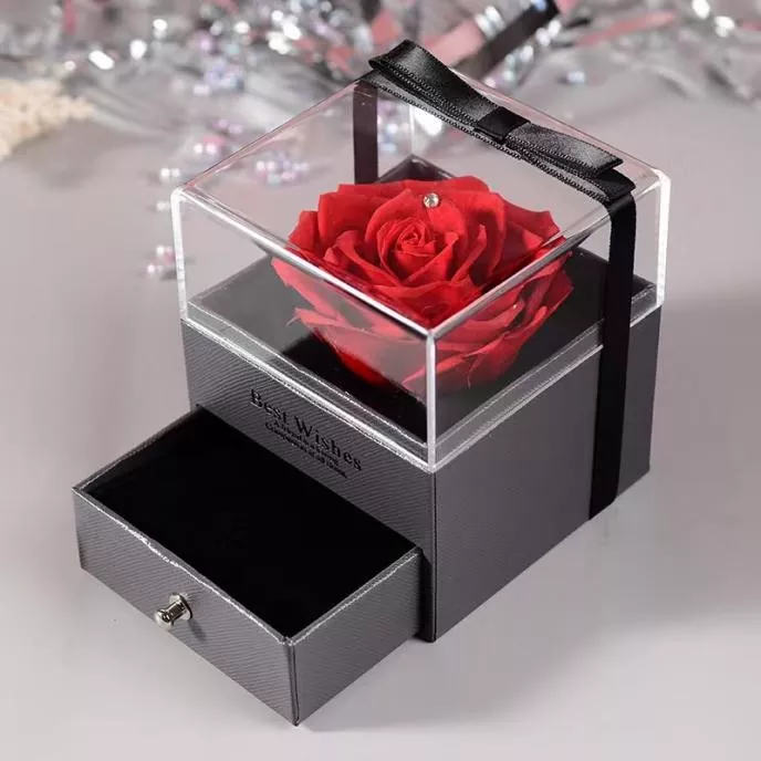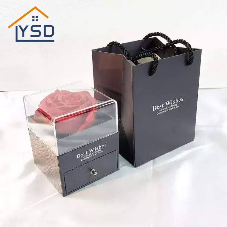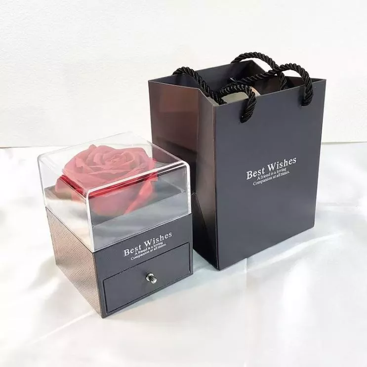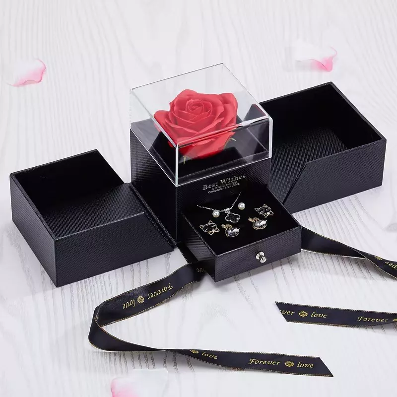 Mais importante ainda, esta "caixa de joias do Dia dos Namorados" é personalizável para atender a diversas necessidades de compra. Primeiro, o exterior permite personalização. Se você é proprietário de uma empresa e deseja imprimir o logotipo da sua loja, informações de contato ou um slogan do Dia dos Namorados na caixa de acrílico, a fábrica pode fazer isso, e o design impresso é claro e resistente ao desbotamento. Se quiser alterar a cor ou a quantidade das flores do sabonete, por exemplo, mudando todas para vermelho escuro ou adicionando algumas margaridas, você também pode ajustar isso. A seguir, oferecemos tamanhos personalizados. Se você tiver joias de um tamanho específico, como uma pulseira mais longa ou um pingente maior que não cabe em uma caixa normal, a fábrica pode ajustar o tamanho da caixa para se adequar às dimensões da joia, garantindo que ela caiba com segurança. Por fim, oferecemos embalagens personalizadas. Se você estiver comprando a granel como presentes, a fábrica também pode fornecer sacolas, envelopes para presentes e até embalagens individuais de acordo com suas especificações, evitando que você tenha que encontrar a embalagem sozinho. O processo de customização também é rápido; pedidos padrão podem ser entregues em uma semana e pedidos urgentes podem ser agilizados, tornando a compra uma experiência sem preocupações.
